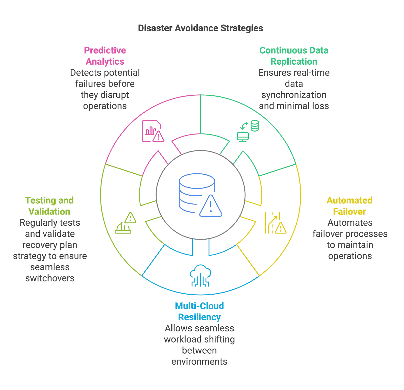 Traditional disaster recovery strategies focus on restoring systems after an incident occurs, which means you will experience outages of production systems and possibly lose critical and production level business data. However, with the rise of cyber threats, human errors, hardware failures, and natural disasters, preventing downtime before it happens is very crucial for business continuity. Disaster avoidance planning leverages proactive strategies, real-time replication, and failover mechanisms to minimize or eliminate disruptions altogether.